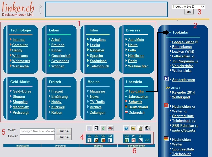 kann direkt nach Begriffen im Internet (Web) oder auf Linker.ch gesucht
